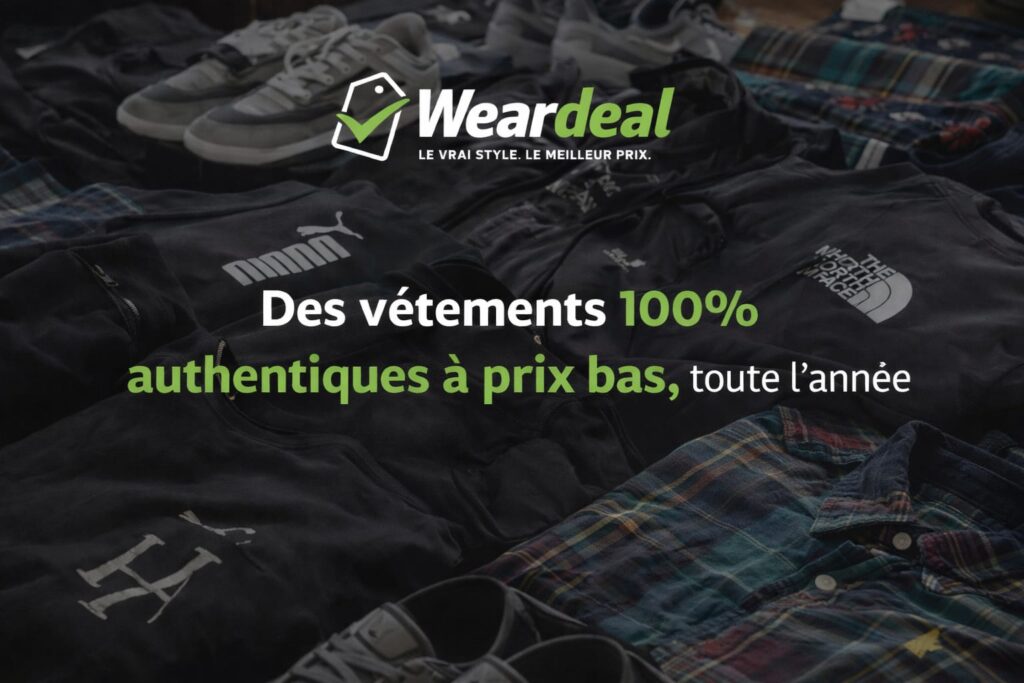 Weardeal est une marque dédiée à la revente de vêtements 100 % authentiques de grandes marques, proposés à des prix plus accessibles.